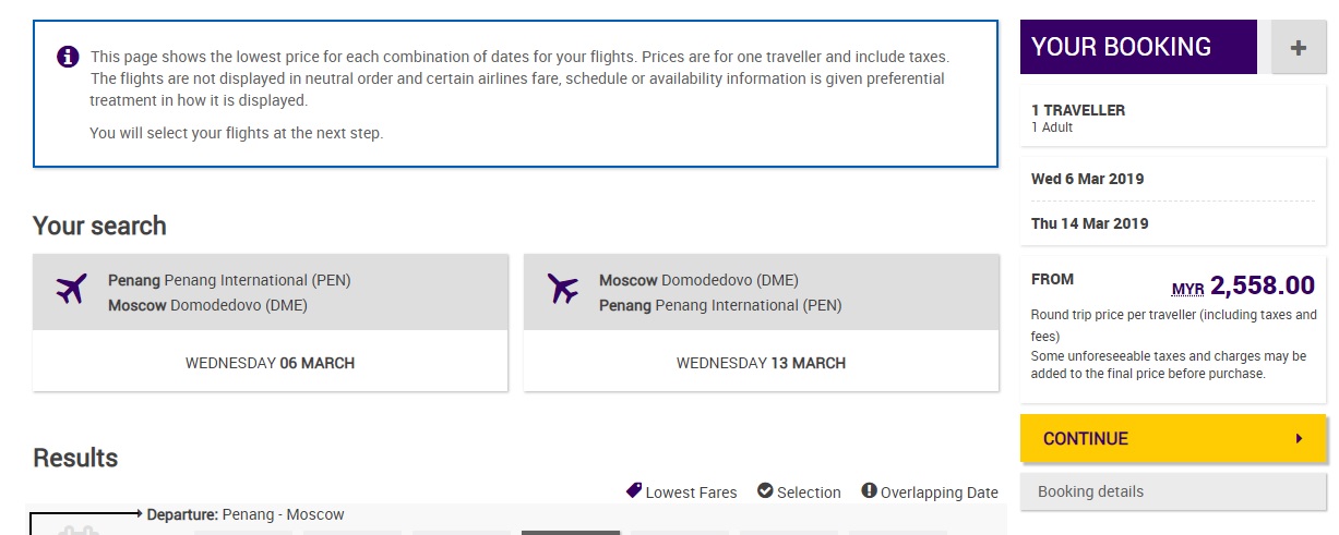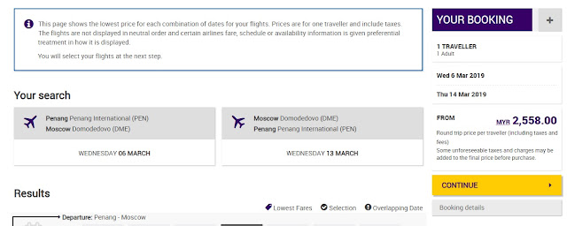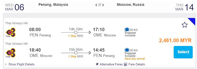 Penang直飞Moscow,通过12fly购买只需RM2461