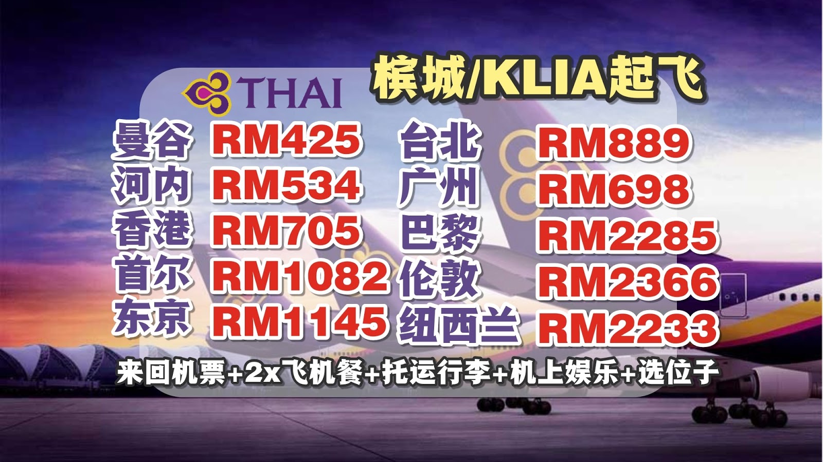 槟城直飞曼谷价格包含:来回机票、20KG行李、飞机餐、免费选位子!!