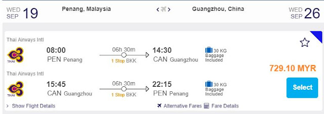 Penang飞往广州,只需RM729.10