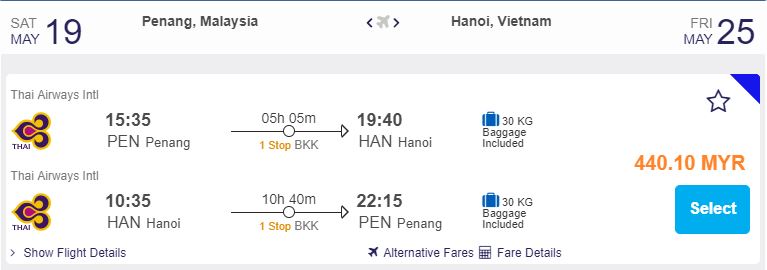 Penang飞往Hanoi,只需RM440.10