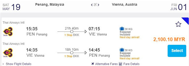 Penang飞往Vienna,只需RM2,100.10