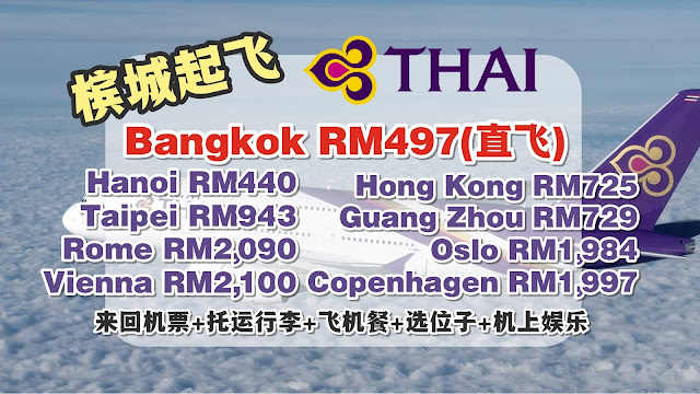 Penang直飞曼谷,只需RM497.10