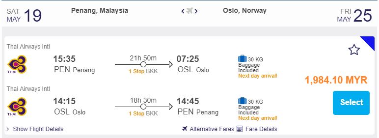 Penang飞往Oslo,只需RM1,984.10