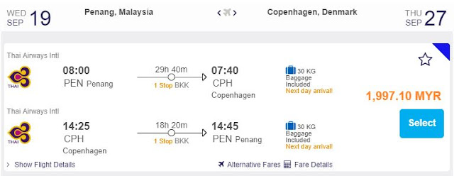 Penang飞往Copenhagen,只需RM1,997.10