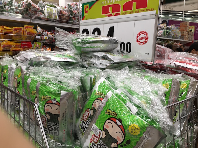 紫菜!在泰国的所有超级市场都可以买到不同口味不同形状卖相或包装的紫菜零食。