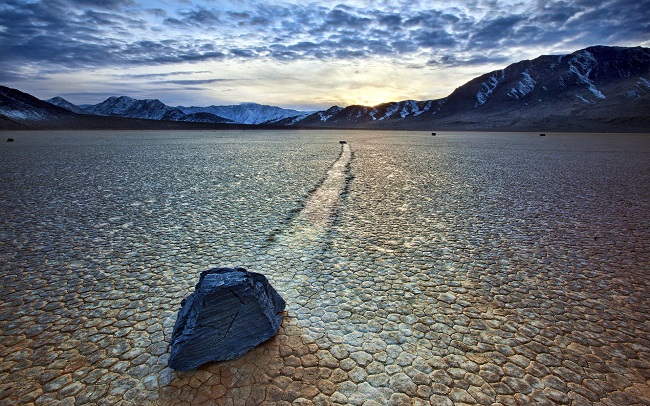 死亡谷国家公园主要位于美国加利福尼亚州东南部,这里的地壳便呈条状下沉,分解成大致为南北走向的地垒﹝山脉﹞和地堑﹝盆地﹞。盆地和山脉区在死亡谷这里特别显著,因为这里拥有全西半球海拔最低的地点。公园里有盐碱地、沙丘、火山口、峡谷、雪山等,有丰富的地质地貌,游客不难找到地壳里各式各样的断层、峡谷往荒漠注入时形成大大小小的冲积扇平原等。(照片/资料)