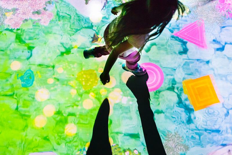 In this digitally projected world, visitors of all ages can create their own environment by touching Chinese and Japanese characters, which then transform into natural elements such as wind, rain, trees and mountains. When visitors touch the characters, the story begins and the movement of their bodies further changes and evolves the world. Just as in nature where no two moments are repeated, the visitor experiences a new story each time he encounters the artwork.