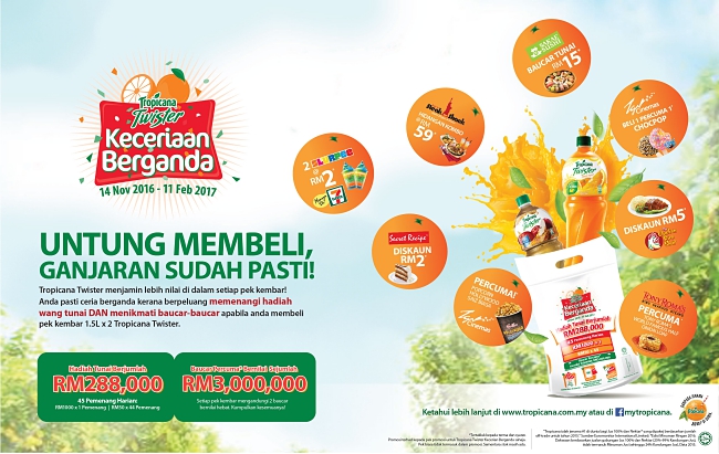 For more information on all Tropicana Twister Keceriaan Berganda campaign details, please visit: www.tropicana.com.my.
