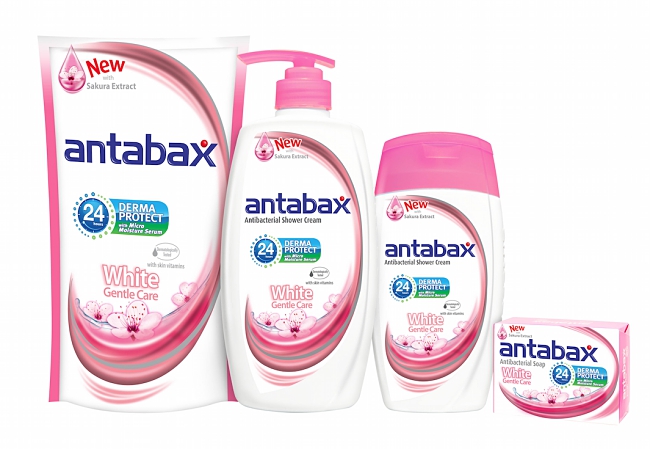 Find it in the new Antabax White Gentle Care Antibacterial Shower Cream and Soap range that cleans and protects without stripping skin of its natural oils, and adds the many skin benefits of Sakura extract. With Antabax Derma Protect System for 24-hour antibacterial protection, and Micro Moisture Serum that contains skin vitamins for moisturising, each shower leaves your skin protected against 99.9% of germs, yet soft, smooth and well nourished.