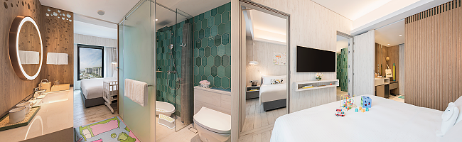 Families of up to four staying at Village Hotel at Sentosa can opt for family rooms comprising two connecting rooms with their respective en suite bathrooms and double the amenities.