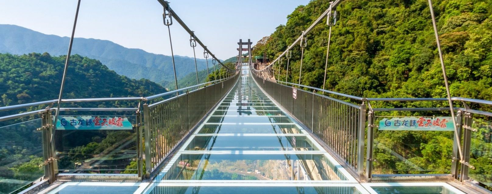 - Gulong Gorge, Qingyuan – Renowned for its dramatic canyon views, waterfalls, and pristine natural surroundings, Gulong Gorge is one of Qingyuan’s signature natural attractions. Visitors may experience the high-altitude glass skywalk featuring 5D visual cracking effects, creating the thrilling illusion of glass shattering beneath your feet for an exhilarating and unforgettable experience.