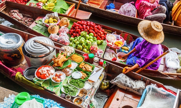 Traditional teak buildings like the grand Vimanmek Palace and the residence-turned-museum Jim Thompson House contrast with the city’s skyline of modern high-rises. Shopping options range from the upscale mega-malls of the Ratchaprasong district to the thousands of tiny stalls at overflowing Chatuchak Weekend Market. The city’s renowned food scene spans traditional street-cart snacks – spicy, sour, sweet and salty – to upscale international restaurants. Bangkok also known for its exuberant nightlife, with venues ranging from swanky rooftop lounges to basic backpacker bars and nightclubs of the notorious Patpong district.